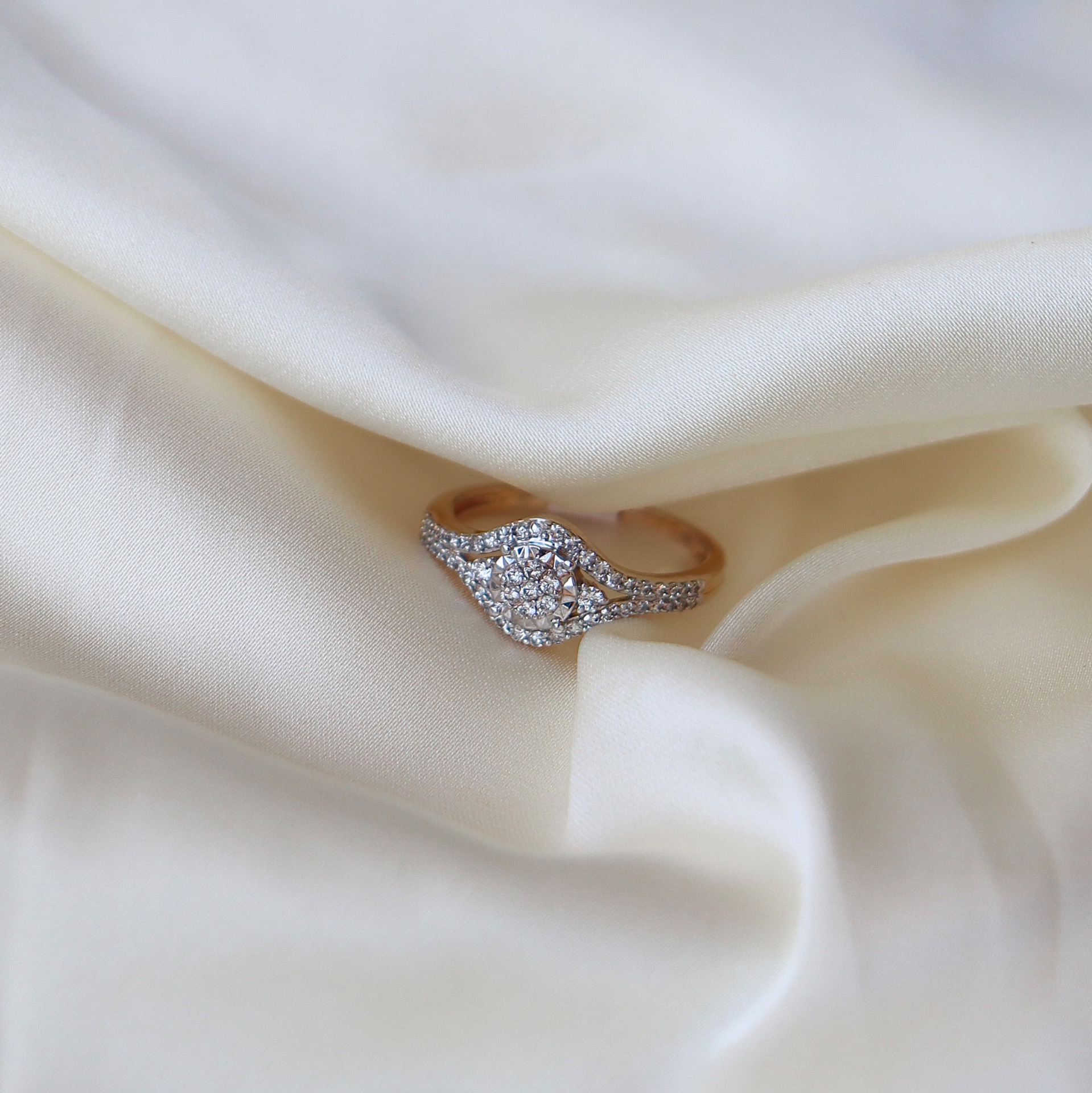 Zlatý prsten, ZÁSNUBNÍ - korunka ve tvaru čtverečku s DIAMANTY, zužující se šína u korunky vel. 52 10 980,00 Kč 0,00 Kč